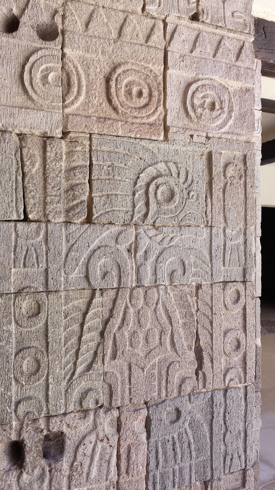 The Templo de Quetzalpapaloti and the Patio of the Jaguars is more ornate than other dwellings and was likely the home of rulers or priests. Stone columns carved with butterflies and birds in profile.